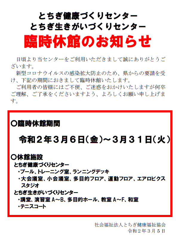指定管理者:社会福祉法人とちぎ健康福祉協会